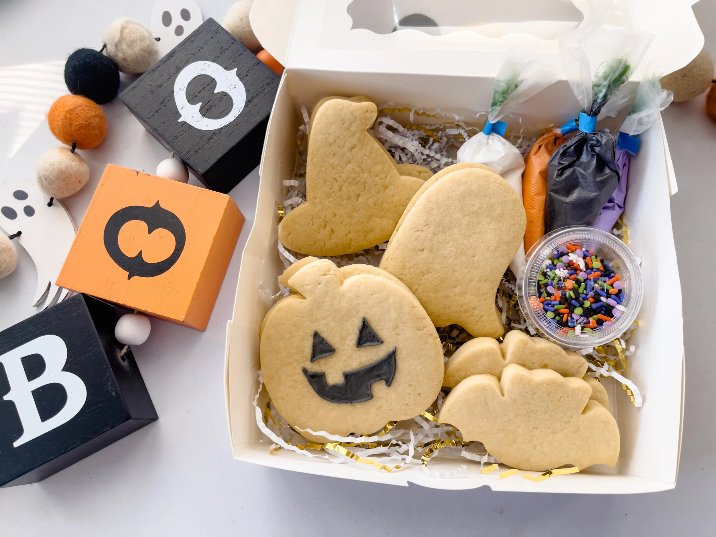 DIY Cookie Decorating Kits are $25. Each box includes 8 cookies, 4 icing bags, and sprinkles.