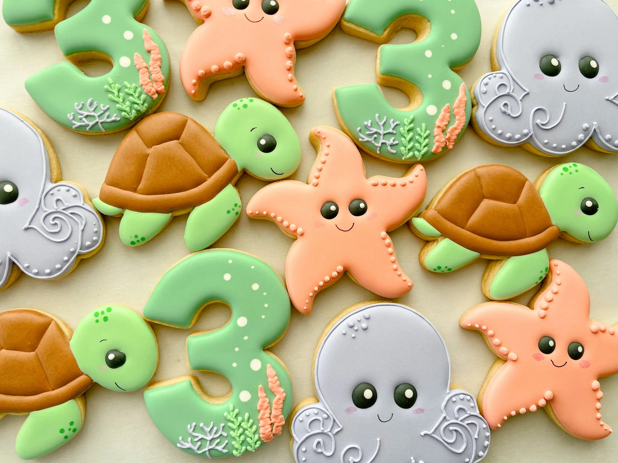 Detailed cookies start at $60 a dozen with a 2 dozen minimum order. Choose up to 4 different designs and 4 different colors. Characters, florals, and other highly detailed elements are not included in this pricing. Please use the inquiry form below for a quote.